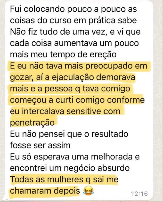 Aluno teve tempo de ereção aumentado, encontrou novos níveis de prazer e foi procurado novamente por todas as mulheres com quem saiu.